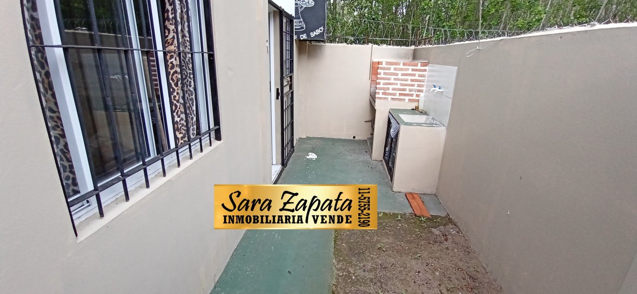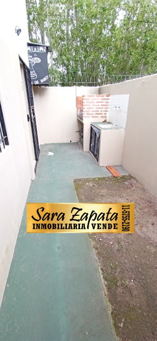 Patio al frente con espacio para un auto cerrado con portón de madera. Y patio individual atrás con fogón, pileta de lavadero, Termotanque eléctrico y gabinete para El Gas envasado y la bomba centrífuga.