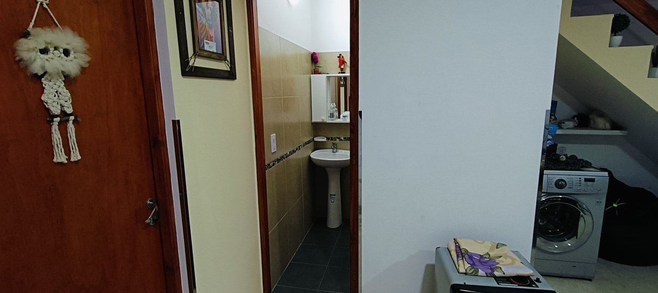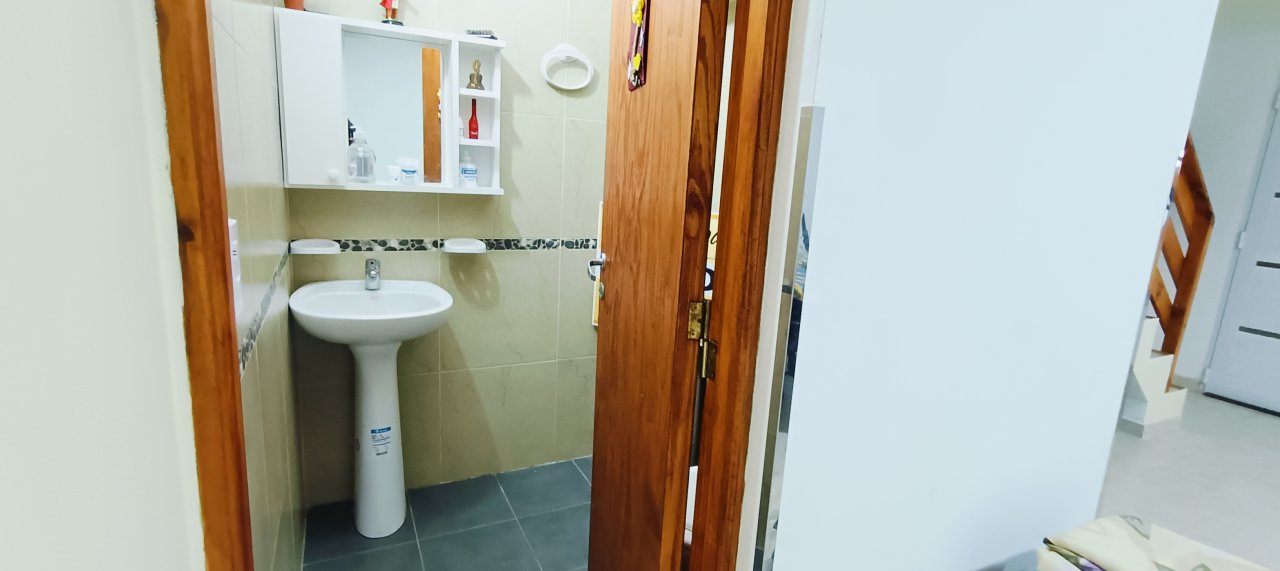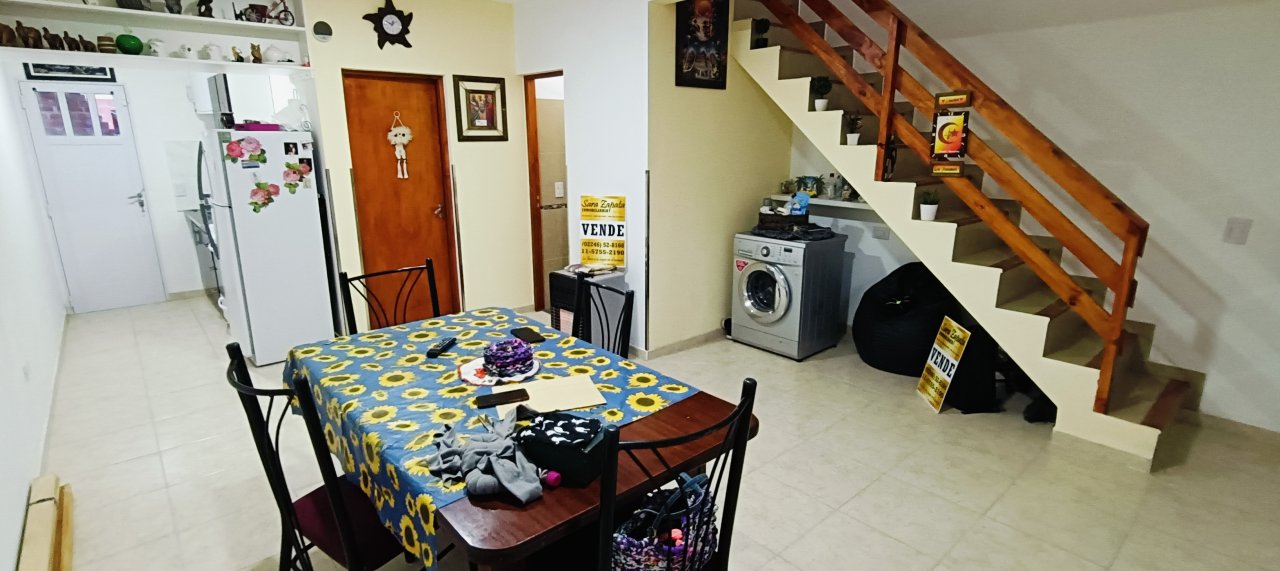 Cuenta con: En planta baja se ubica el LIVING COMEDOR con cocina lateral semi separada, UN DORMITORIO y UN TOILETTE ; escalera de hormigón con barandas de madera.