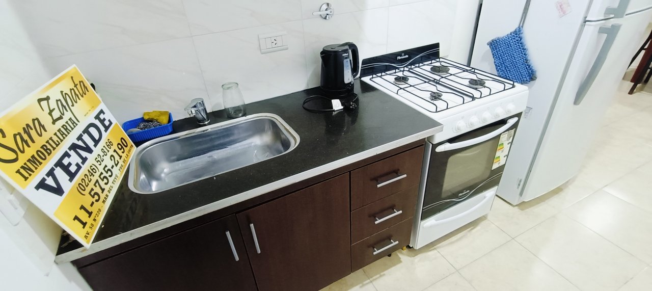 - Mesada con bacha, mueble bajo mesada, alacena, griferías instaladas.