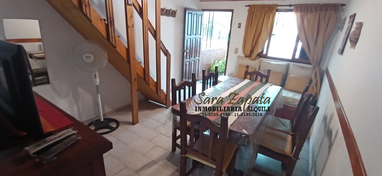 En planta baja se encuentra el comedor con sofá cama + SMART TV + ventilador de pie, y UN BAÑO completo;