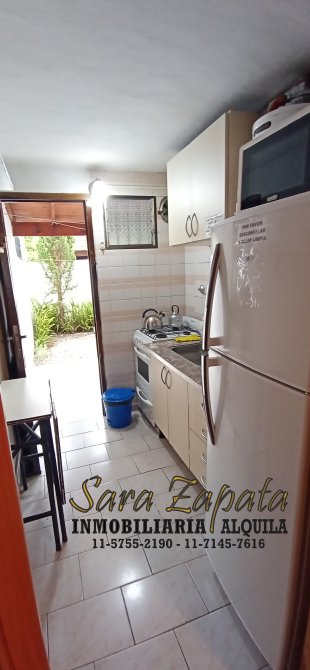 cocina separada con vajilla básica + microondas + heladera con freezer y termotanque a gas;