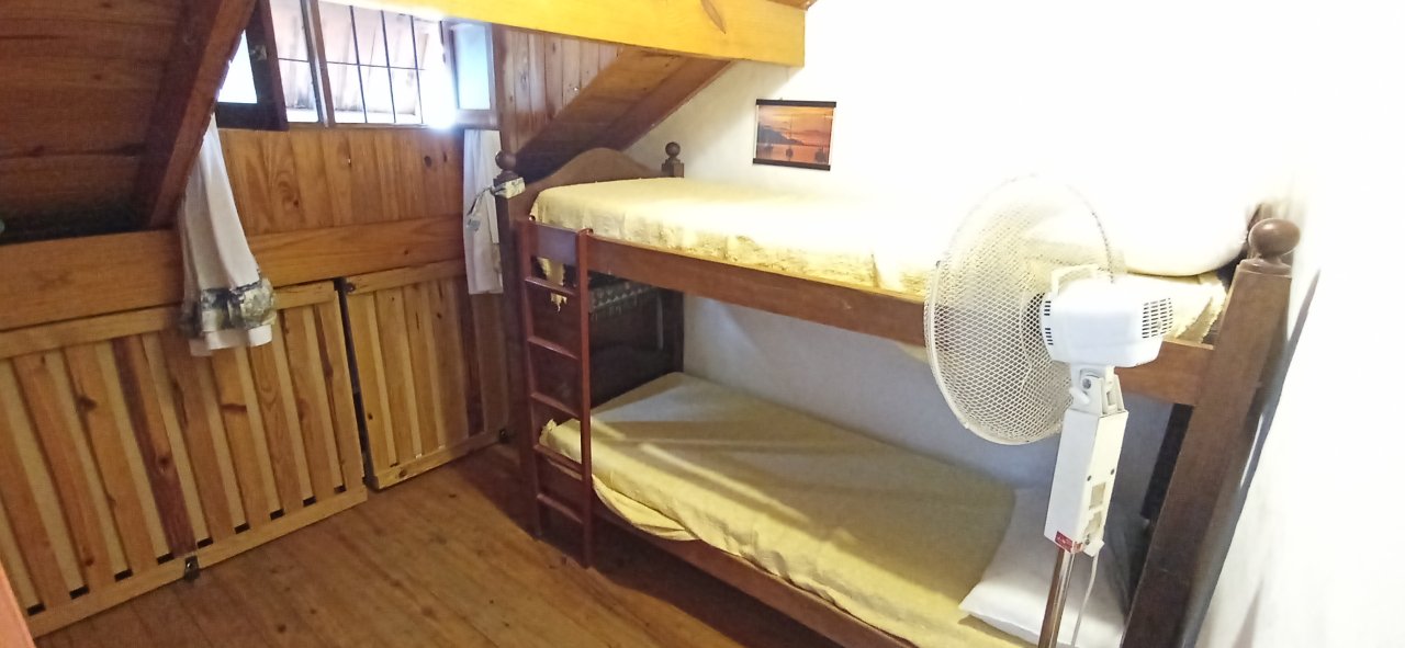 En Planta alta tiene DOS HABITACIONES: una con cama matrimonial (+ ventilador de techo y placard), y otra habitación con cama marinera (+ ventilador de pie).