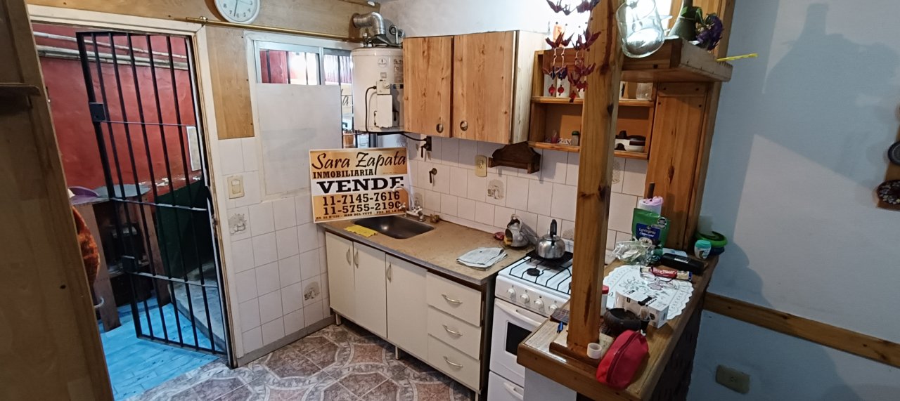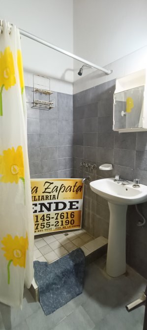 Pequeño PATIO individual atrás con pileta de lavado, gabinete para la garrafa y la bomba centrífuga.
