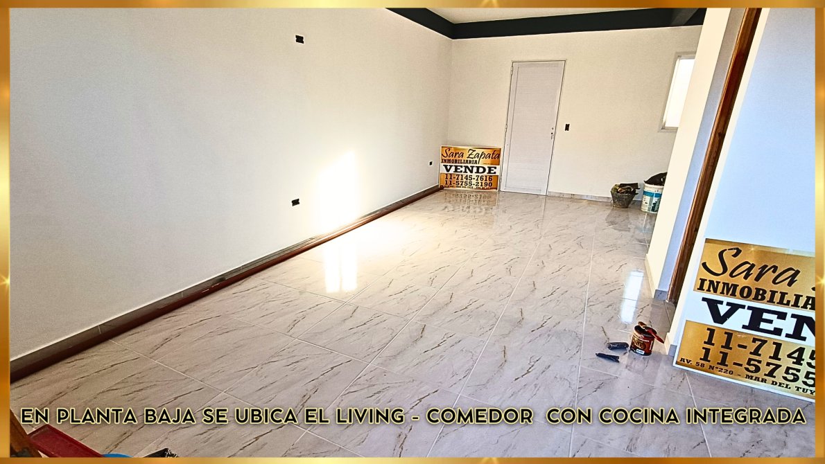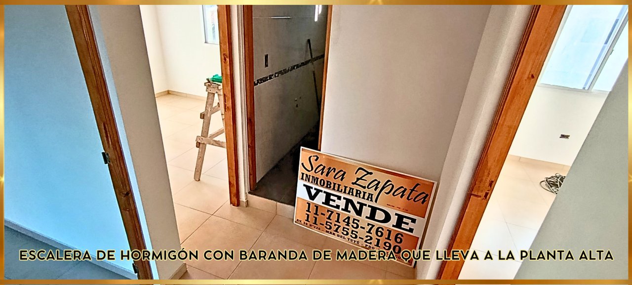 ~ En planta baja se ubica el LIVING COMEDOR con COCINA integrada, y UN TOILETTE ; escalera de hormigón con barandas de madera.