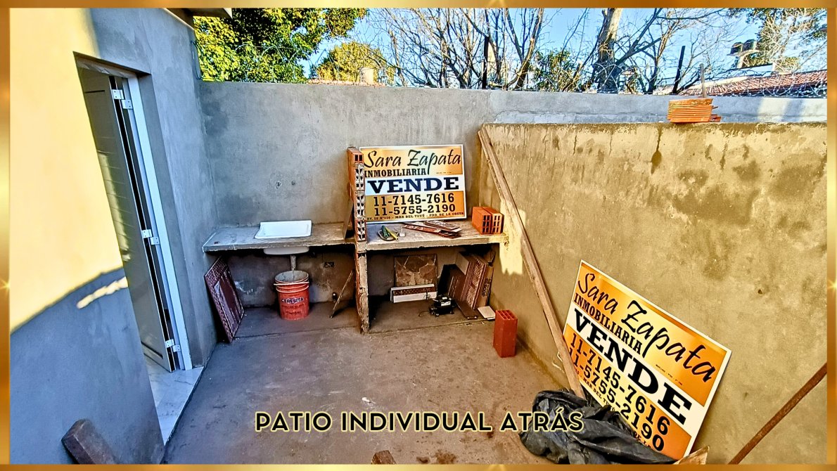 + PATIO individual atrás con parrilla campana y pileta de lavado.