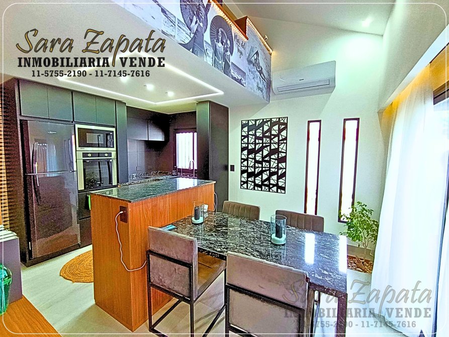 En planta baja: el COMEDOR se compone de Mesa de mármol con luces, 4 sillas de diseño y un Aire acondicionado inverter frío/calor ,
