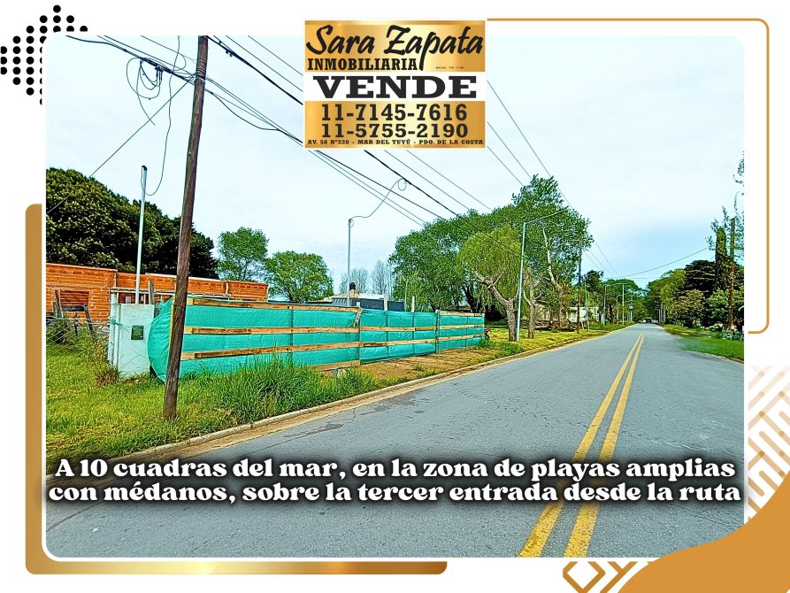 A 10 cuadras del mar, en la zona de playas amplias con médanos, sobre la tercer entrada desde la ruta, pegado a Costa del Este.