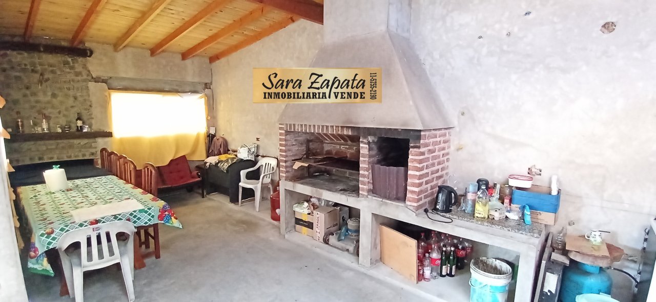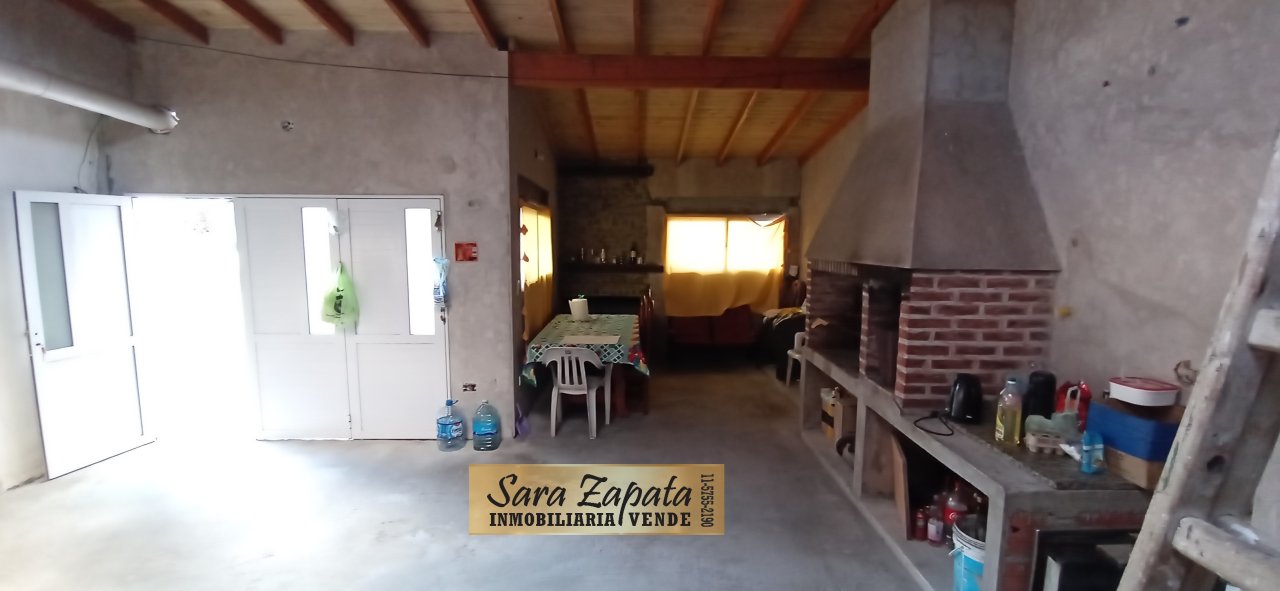 - A la izquierdo de la casa se encuentra un GRAN QUINCHO que cuenta con tanque de agua, bomba y perforacion de agua idividual, independiente de la casa, entrada de garage y espacio para VEHÍCULO, una parrilla grande, pileta de lavado, un hogar a leña, UN BAÑO, y detrás, un - GRAN AMBIENTE de 6 x 4 mts aprox. a terminar. En este sector el techo es de madera con chapa acanalada y para la entrada de luz chapa de policarbonato en un sector. Faltan terminaciones.