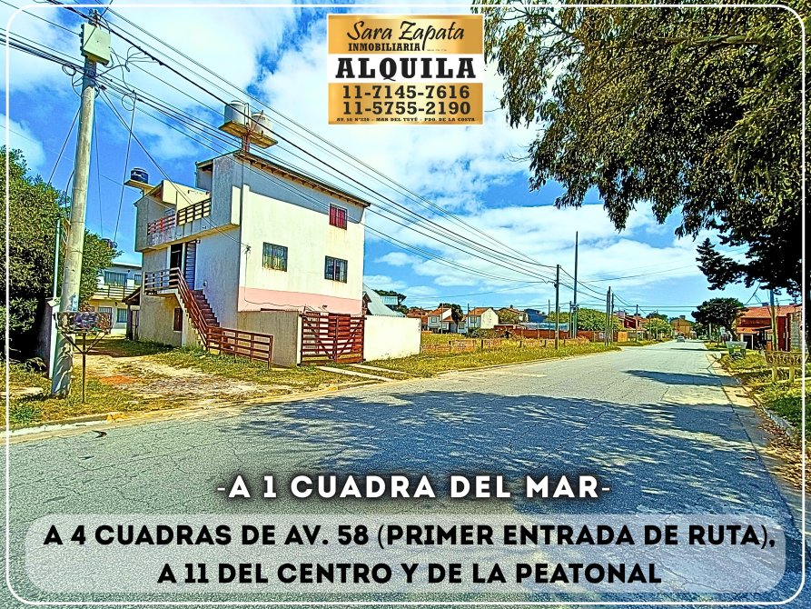 A 1 cuadra del mar, a 4 cuadras de Av. 58 (primer entrada desde la ruta), a 11 del centro y de la peatonal de verano de Santa Teresita.