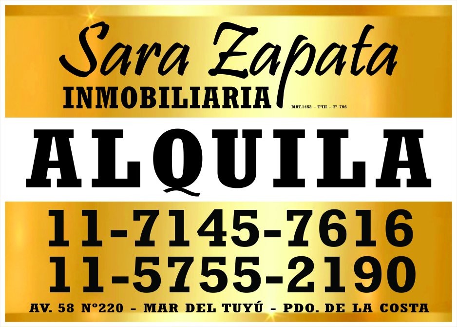 ****SARA ZAPATA INMOBILIARIA, Av. 58 n° 220, Mar del Tuyú, La Costa.****