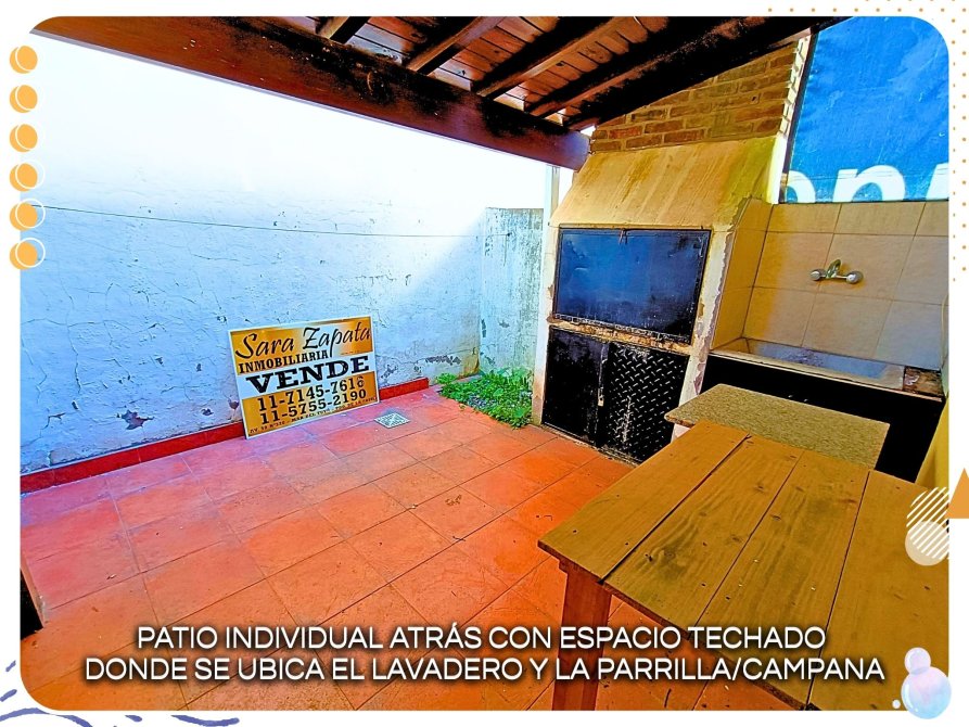~ PATIO individual atrás con espacio techado donde se ubica el lavadero y la parrilla/campana, más espacio pequeño sin techar.