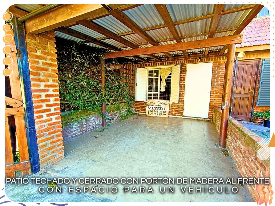 ~ PATIO al frente techado y cerrado con portón de madera, con Espacio para UN VEHICULO.