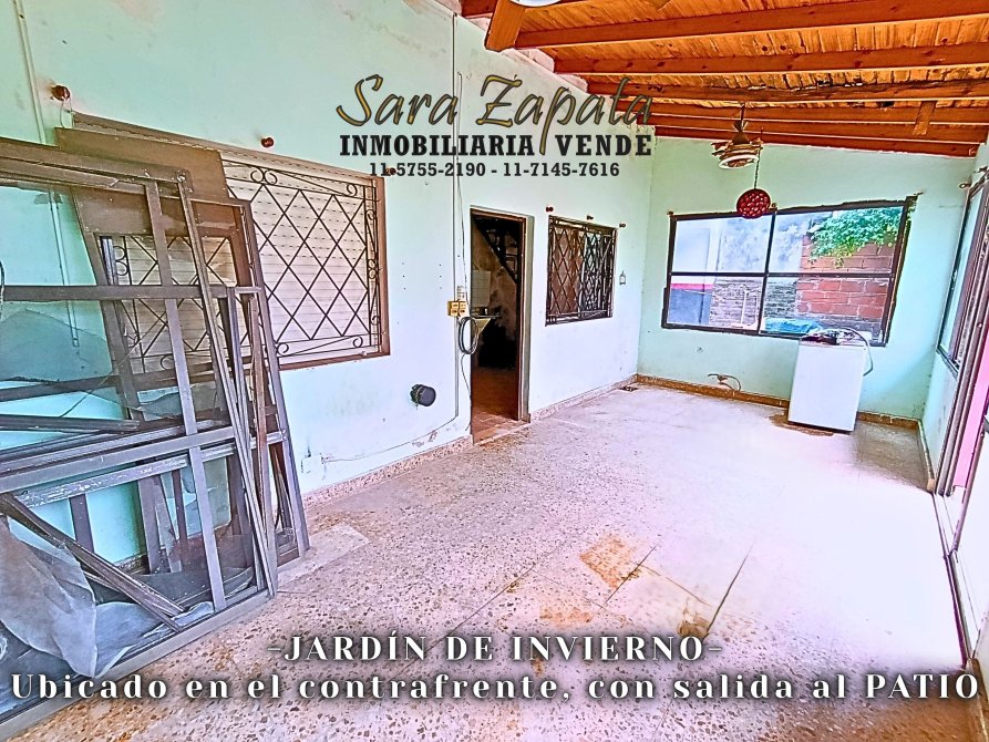 - JARDÍN DE INVIERNO que se ubica en el contrafrente de la casa, este jardín suma un ambiente más, está totalmente cerrado, con amplios ventanales y ventana balcón con salida al patio de atrás.