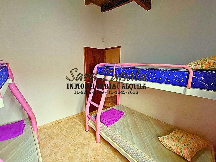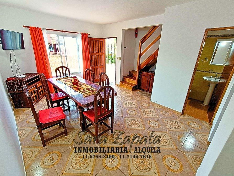 En Planta Baja cuenta con un amplio comedor donde está la TV SMART de 32, la cocina está separada equipada con cocina nueva, vajilla completa, heladera con frezzer, termotanque a gas; una habitación con 2 camas individuales + colchones buenos y placard embutido; un toilette con videt; y un espacioso patio atrás totalmente cerrado con pileta de lavado.