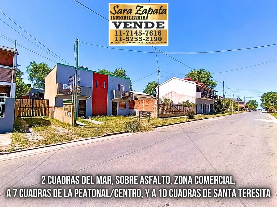 - Sobre asfalto, en zona comercial, a 2 cuadras del mar, a 7 de la peatonal y del centro, y a 10 cuadras de Santa Teresita.