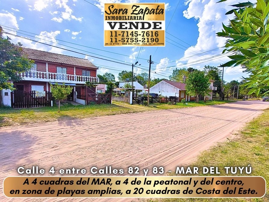 A 4 cuadras del mar, en Calle 4 entre Calles 82 y 83, MAR DEL TUYÚ, COSTA ATLÁNTICA ARGENTINA.