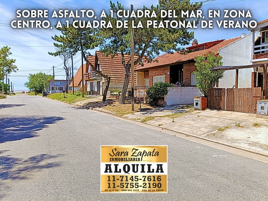 ~ Sobre asfalto, a 1 cuadra del mar, en zona CENTRO, a 1 cuadra de la peatonal de verano, entre Santa Teresita y Costa del Este.