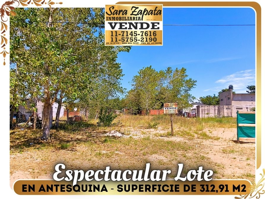 - LOTE EN ANTESQUINA: frente 13 x largo 24,07, superficie total de 312,91 m2.