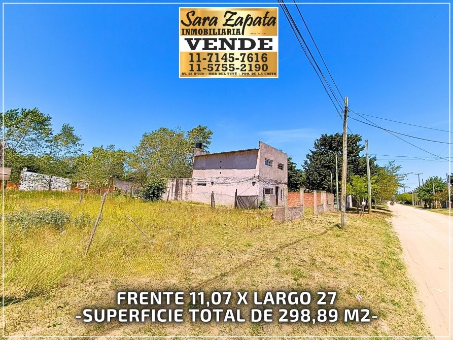 - LOTE EN ANTESQUINA: frente 11,07 x largo 27, superficie total de 298,89 m2.